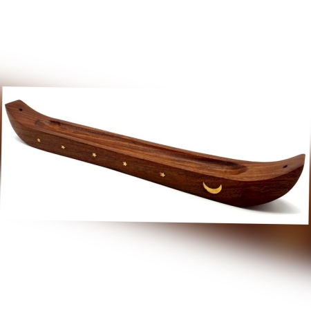 • Porte-Encens Bois Pirogue Lune 36cm