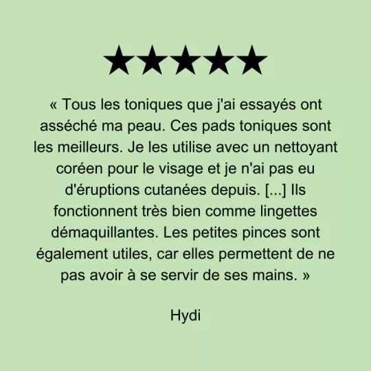 La formule de ces disques contient également 5 types d’extraits de centella asiatica, qui permettent d’apaiser les irritations et d’offrir une hydratation de la peau en profondeur.