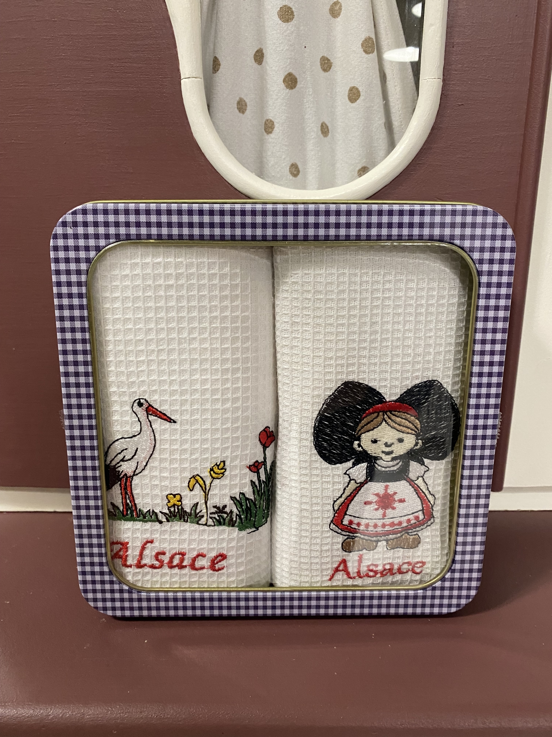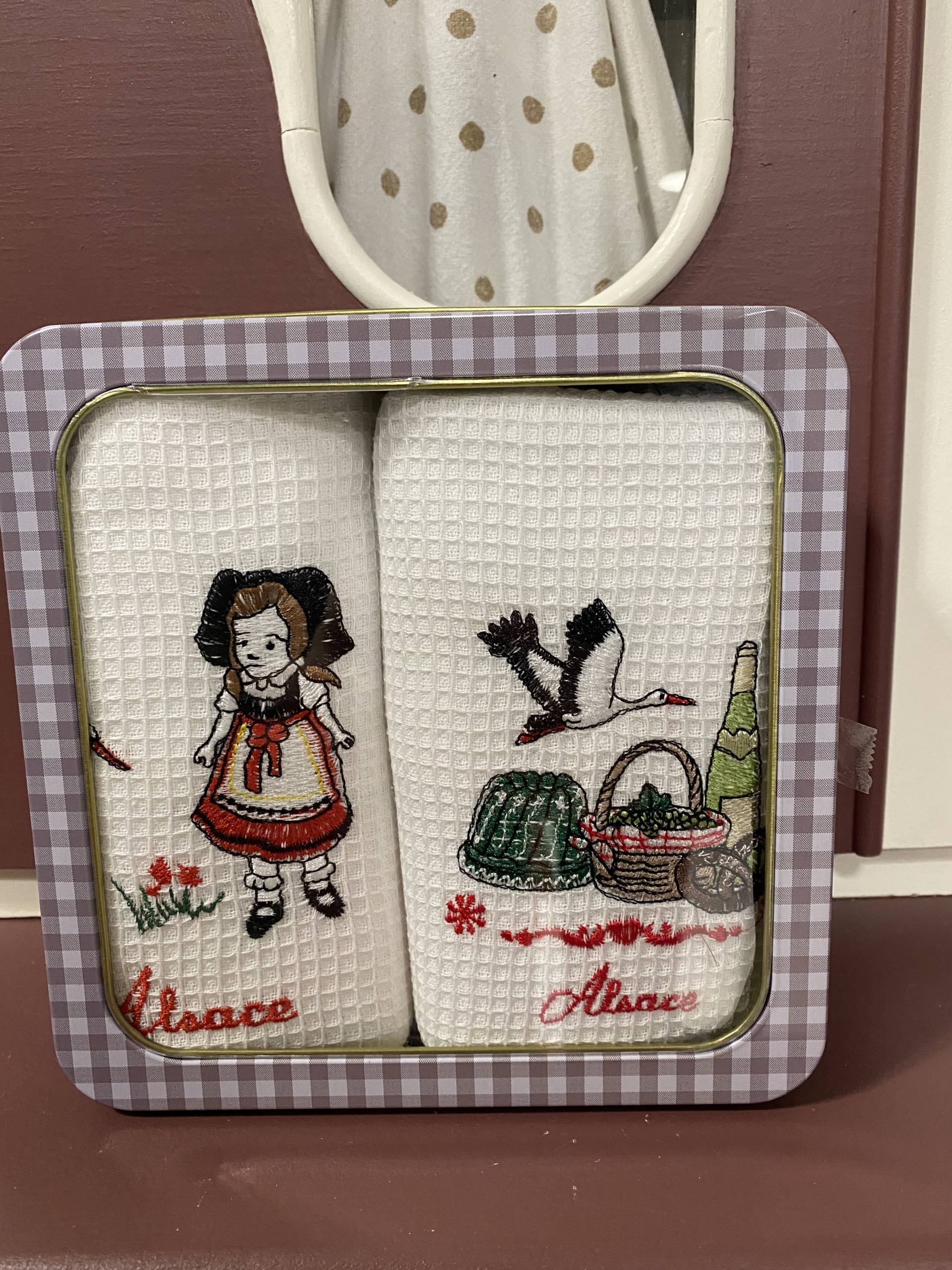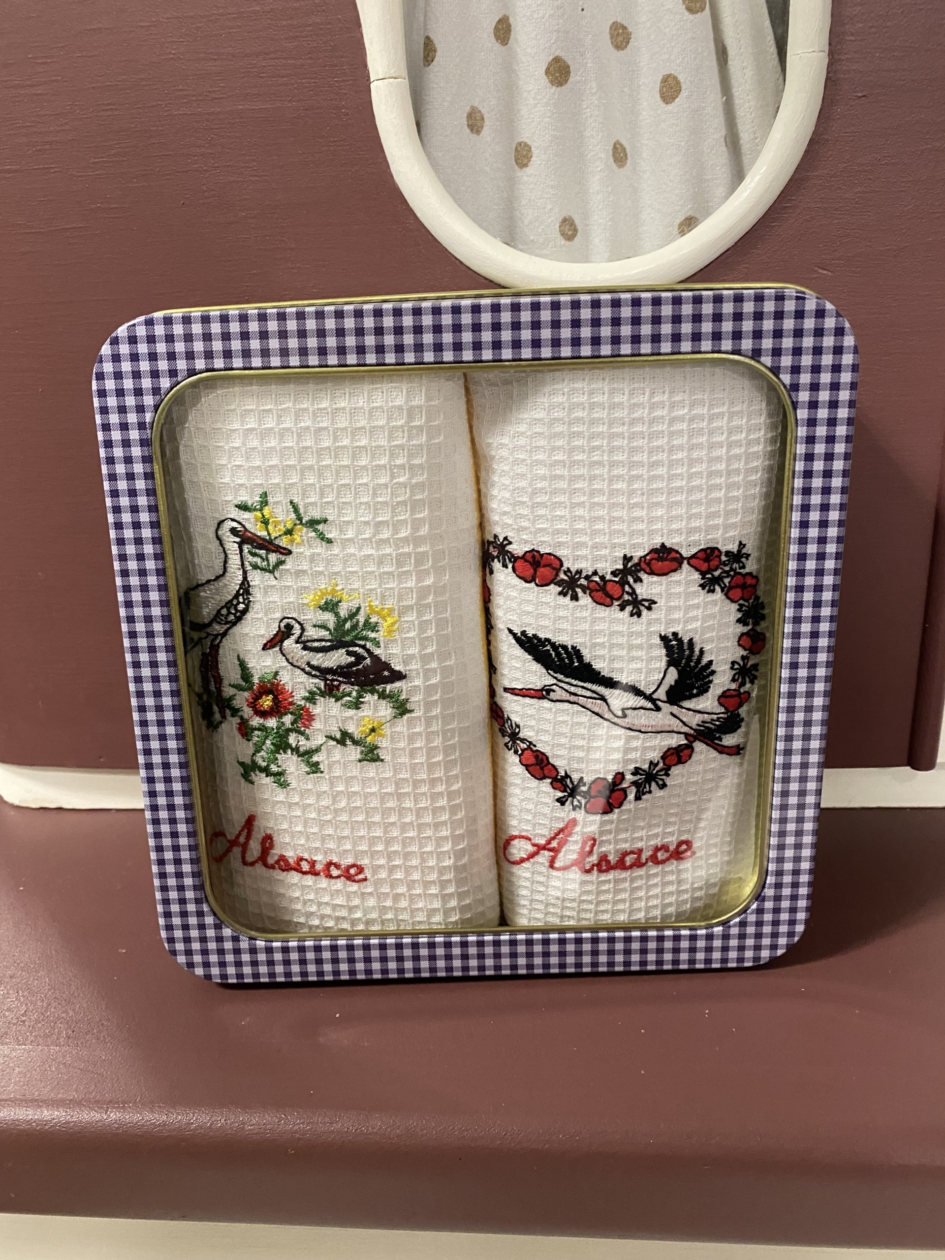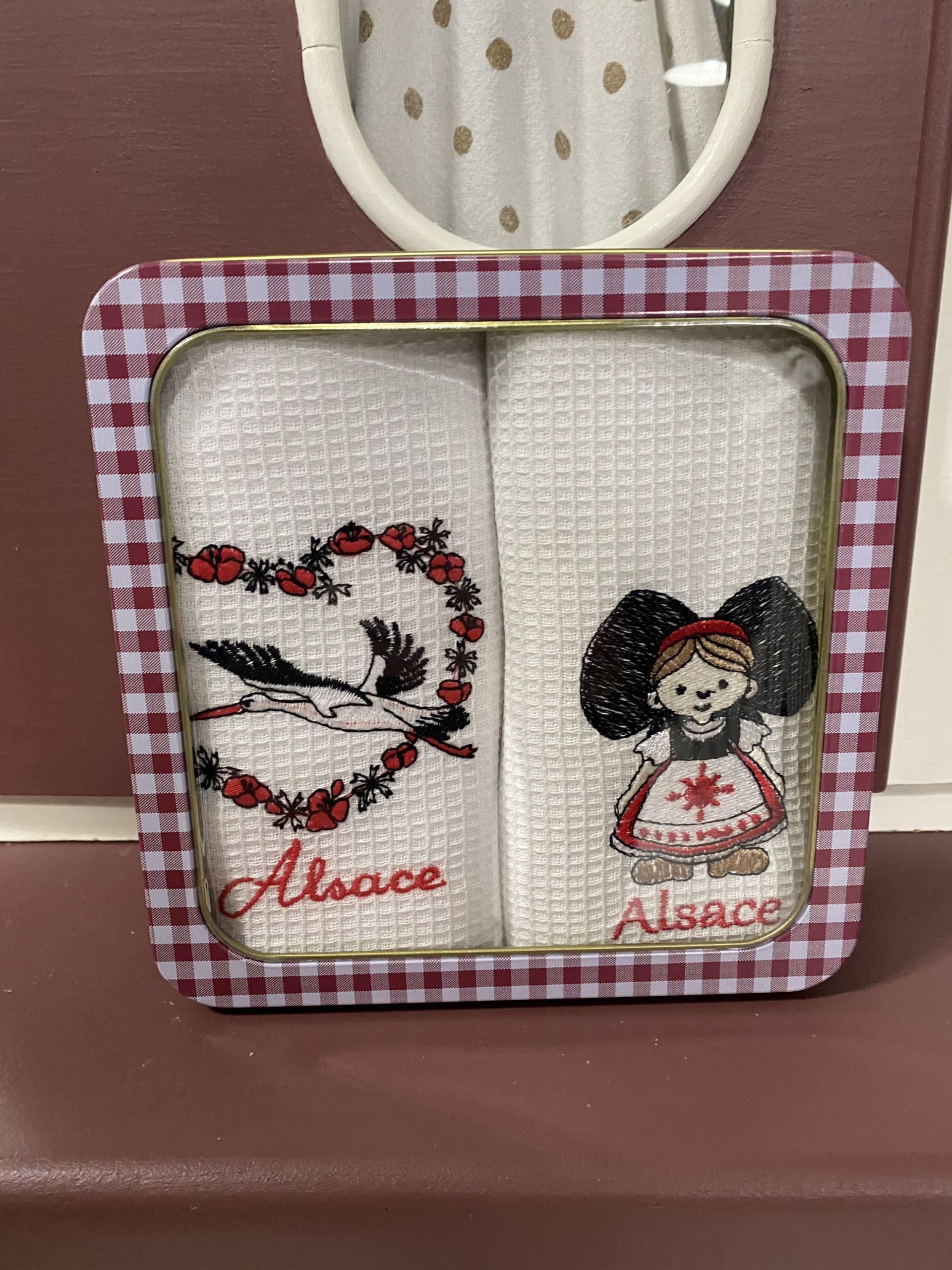 Boîte avec 2 torchons nid d’abeille, un joli souvenir d’Alsace à offrir ou à s’offrir !