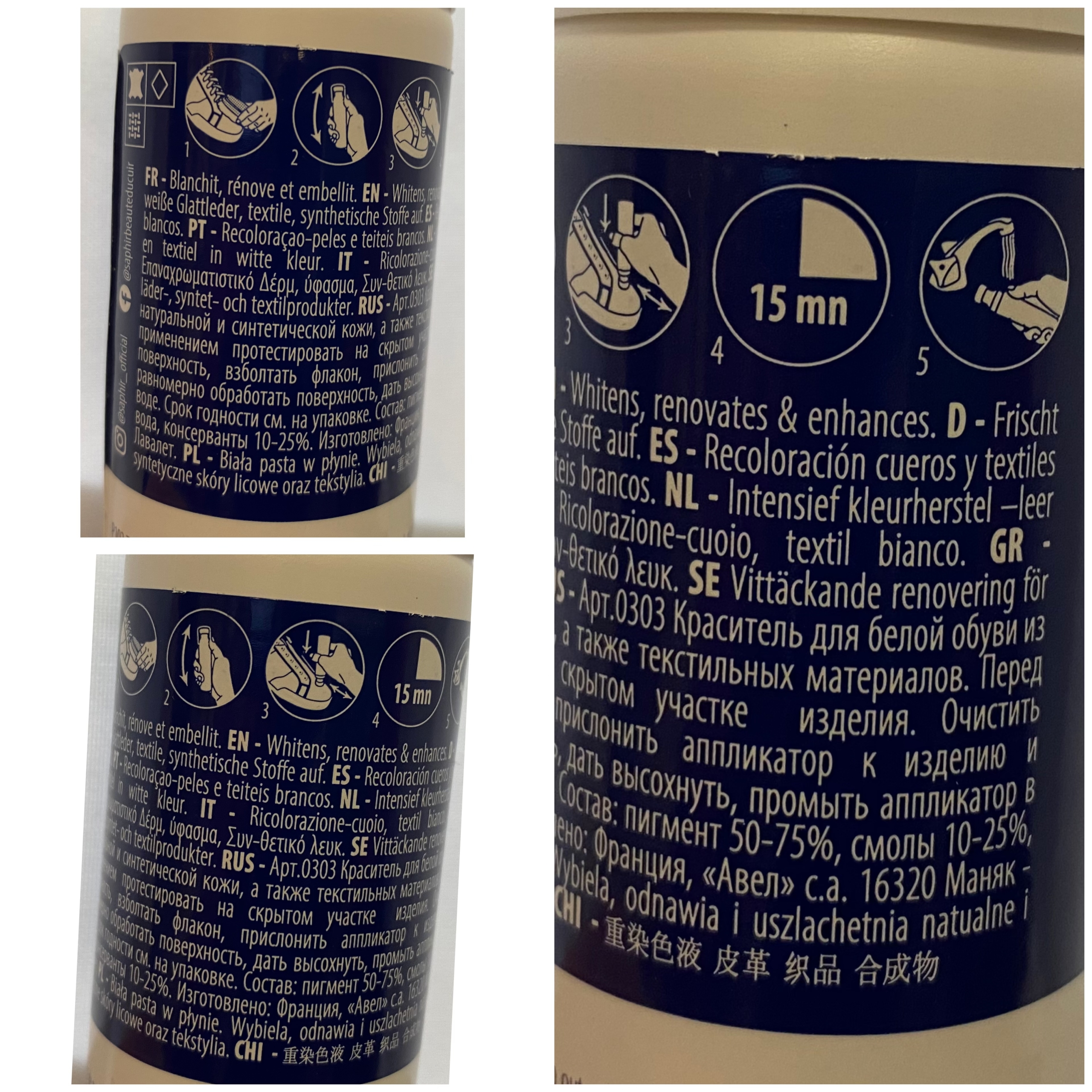 Recolorant blanc. Rénove et embellit les chaussures de sports en cuir et toile blanc. Très