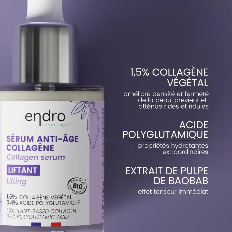 au, glycérine, Coco caprylate/caprate, huile de tournesol*, huile de lin*, pentylène glycol, glyceryl stéarate citrate, collagène, parfum, acide polyglutamique, extrait de pulpe de baobab, extrait d’Aloe Vera en poudre*, levulinate de sodium, gomme d’acacia, maltodextrin, glyceryl stéarate citrate, gomme xanthane, tocophérol, acide lactique, anisate de sodium.