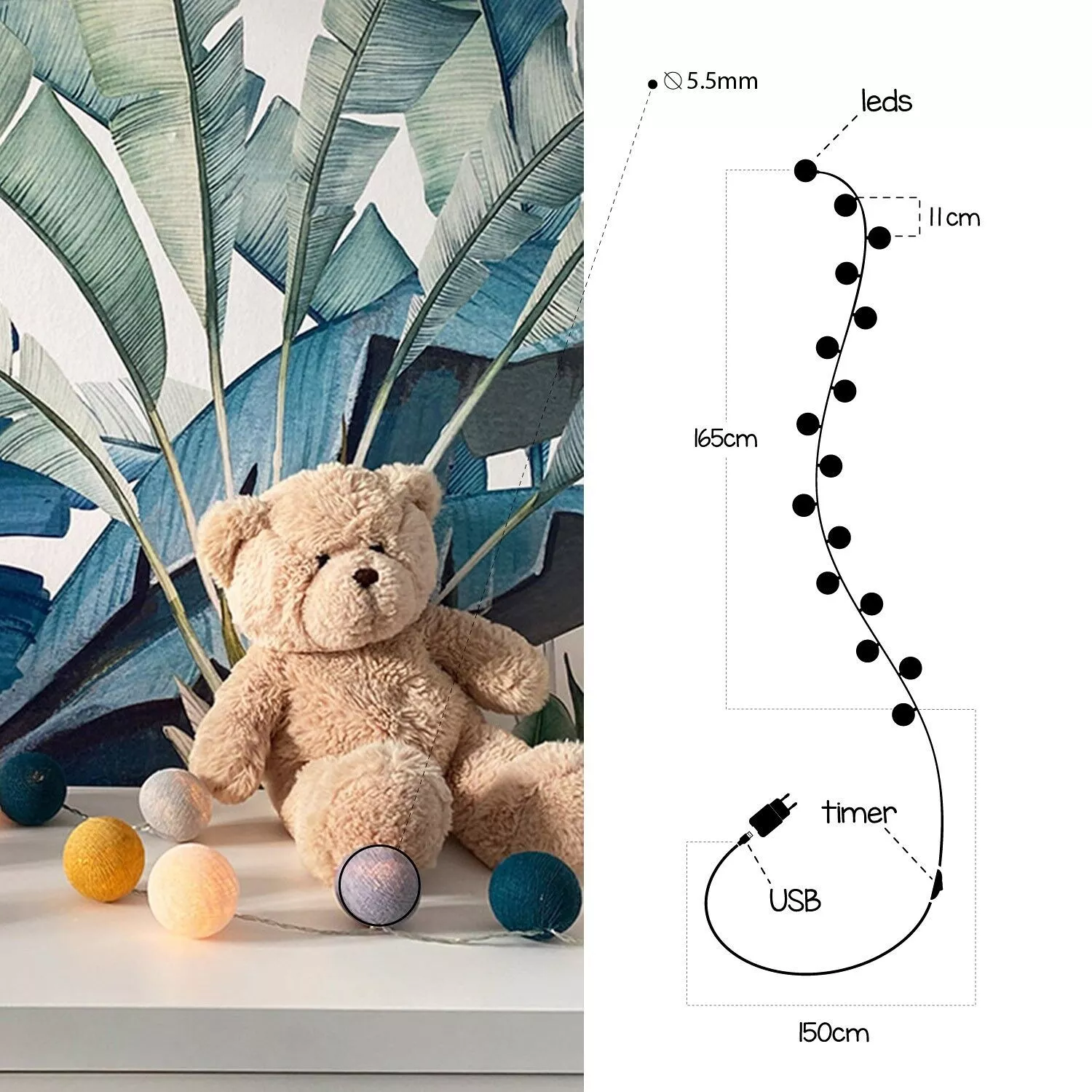 Chaque LED est équipée d’une petite jupe en plastique qui maintient parfaitement la boule sur la guirlande.