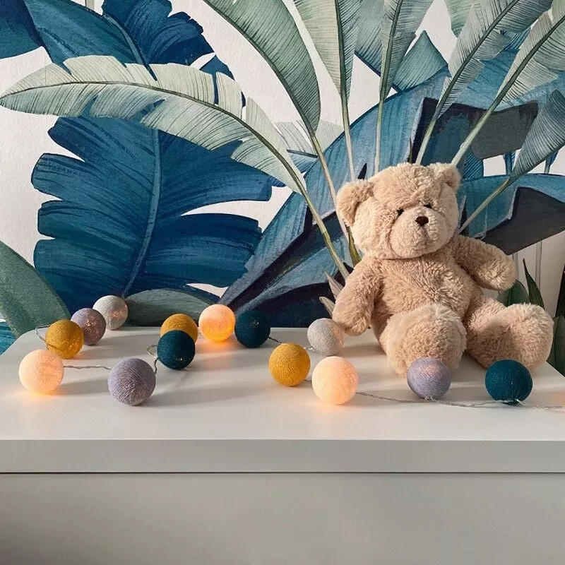 Guirlande La petite case « Collection bébé » de 16 boules en fil de polyester de 5,5 cm de diamètre, les boules sont précoupées pour un montage plus facile.