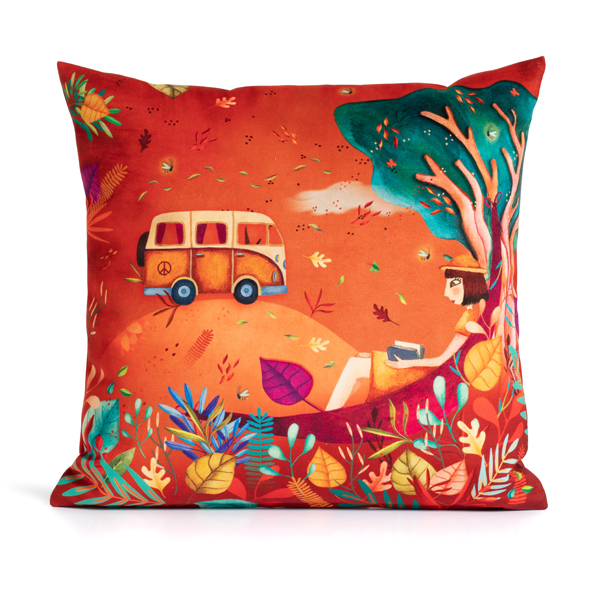 Housse en velours de polyester imprimée sur les deux faces.
