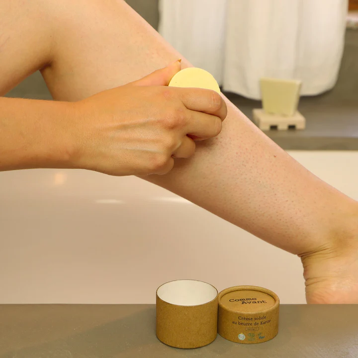 Composition courte : beurre de karité, huile d’olive, cire de candelilla, amidon de maïs