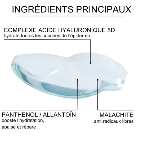 Aqua, Butylene Glycol, Glycerin, Dipropylene Glycol, 1,2-Hexanediol, Pentylene Glycol, Sodium Hyaluronate, Ethylhexylglycerin, Allantoin, Betaine, Hydrolyzed Hyaluronic Acid, Panthenol, Tromethamine, Carbomer, Malachite Extract, Polyglyceryl-10 Laurate, Propanediol, Sodium Hyaluronate Crosspolymer, Glyceryl Acrylate/Acrylic Acid Copolymer, Hydrolyzed Sodium Hyaluronate, PVM/MA Copolymer, Sodium Acetylated Hyaluronate, Cholesterol, Madecassic Acid, Madecassoside, Trehalose, Xanthan Gum, Ceramide 3, Portulaca Oleracea Extract, Paeonia Suffruticosa Root Extract, Scutellaria Baicalensis Root Extract, Beta-Glucan, Hamamelis Virginiana Leaf Extract