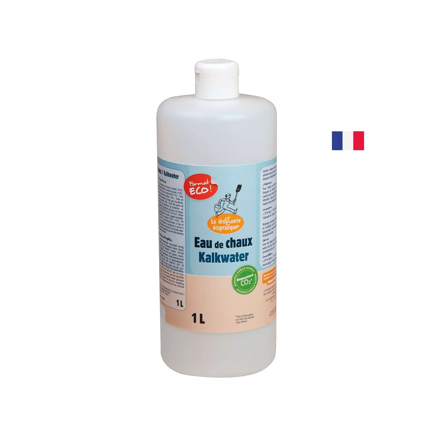 Solution aqueuse obtenue par saturation d’eau et de chaux aérienne issue d’une carrière française. Produit bien connu dans la droguerie traditionnelle et la maison.