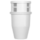 Un filtre sur robinet blanc avec une cartouche SERENITY et un adaptateur femelle à visser sur le robinet de l’évier.