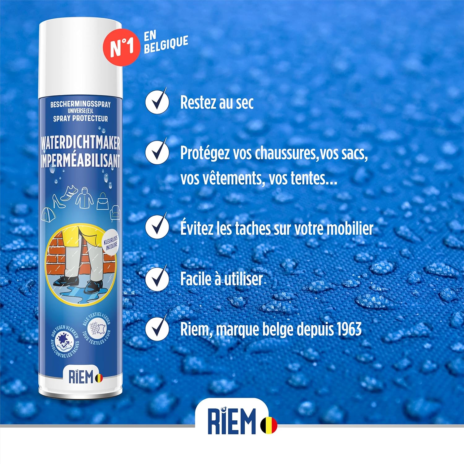 RESTEZ AU SEC : Grâce à sa formule hautement protectrice, notre spray vous permet d’imperméabiliser vos vêtements, vos chaussures, vos sacs… Il est efficace sur tous les types de textiles et de cuir (naturel, daim, nubuck, synthétique…). Incolore, il convient pour tous les coloris.