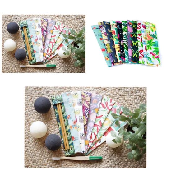 Cap Bambou vous propose une jolie pochette de rangement Made in France. Panachage des tissus. Idéal pour le transport des brosses à dents ou pailles.