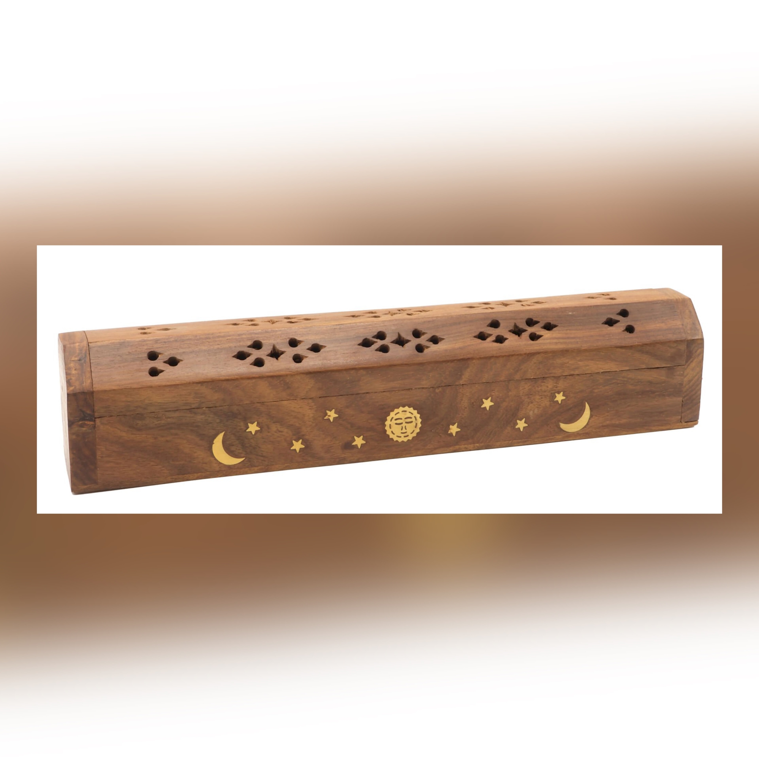 Porte-Encens Bois Coffret Lune & Soleil 30cm