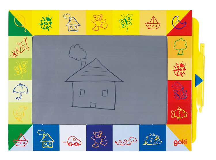Il suffit de tirer sur le cadre pour que tout s’efface afin d’écrire à nouveau. Un cadeau idéal pour les goûter d’anniversaire.