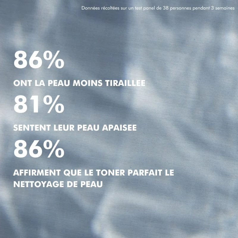 TONIFIER : la peau est revitalisée, lumineuse et éclatante de fraicheur. (acide hyaluronique et hydrolat de lavande)